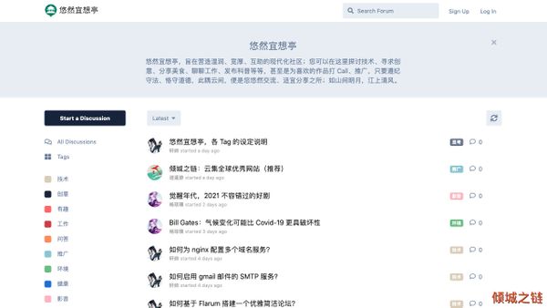 悠然宜想亭,旨在营造温润、宽厚、互助的现代化社区;您可以在这里探讨技术、寻求创意、分享美食、聊聊工作、发布科普等等,甚至是为喜欢的作品打 Call、推广,只要遵纪守法、恪守道德,此隅云间,便是您悠然交流、适宜分享之所;如山间明月,江上清风。